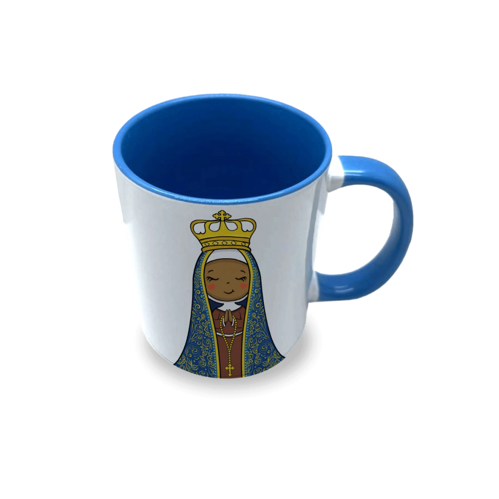 • Estampa: Imagem delicada de Nossa Senhora Aparecida e a frase "Bênçãos de Nossa Senhora"