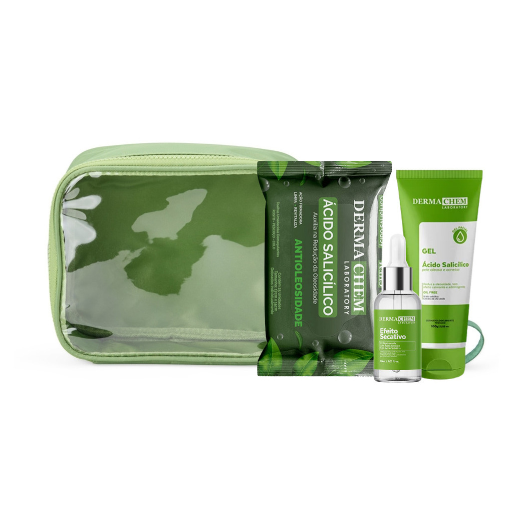 Este kit foi especialmente desenvolvido com o poder do Ácido Salicílico para criar uma rotina focada no combate à oleosidade excessiva, cravos e espinhas. Com três passos essenciais da Dermachem, você terá uma pele limpa, sequinha e bem cuidada todos os dias. Para deixar tudo ainda mais especial, o kit acompanha uma linda e prática necessaire, perfeita para organizar seus produtos de tratamento!